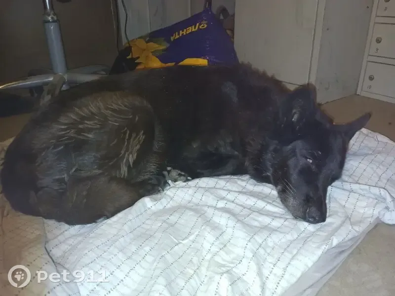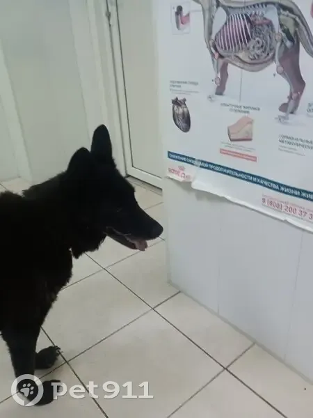 Девочка, метис, цвет чёрный, без ошейника. В клинике сказали что возраст 6+ лет.
