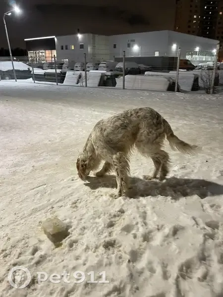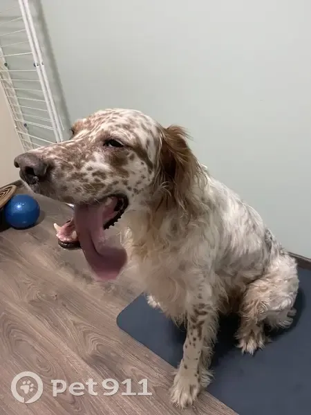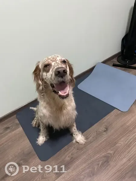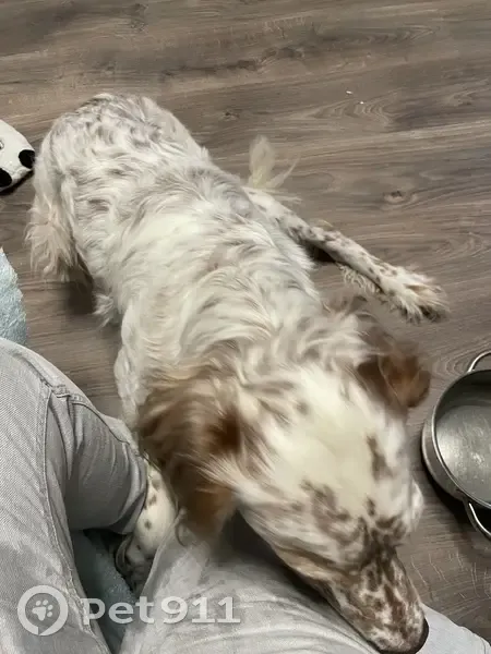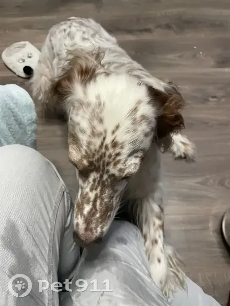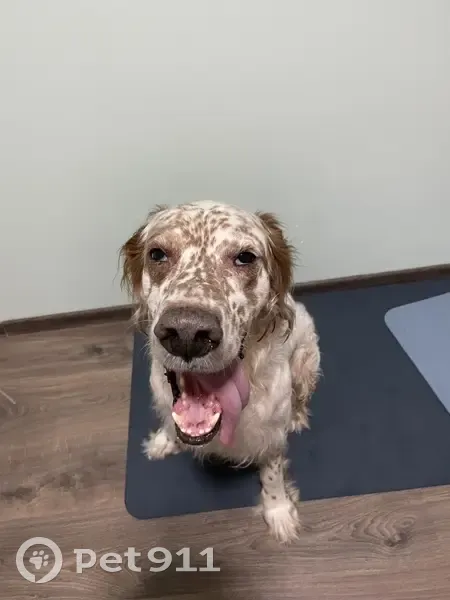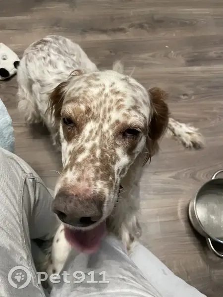 Молодой мальчик ( ну с виду) есть клеймо , Английский сеттер ( я не спец, но вроде он) добрый и очень нервничает. Хозяева найдитесь быстрее. При передаче буду проверять документы. Завтра пойду в ветклинику искать чип