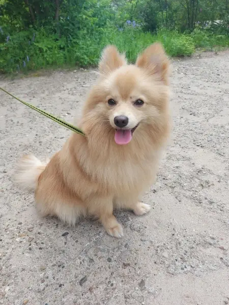 Около магазина долгое время сидела рыжая собака, обойдя все магазины, хозяев не нашли. Ошевник оранжевый. Малышка на данный момент на передержке и ждет родителей.