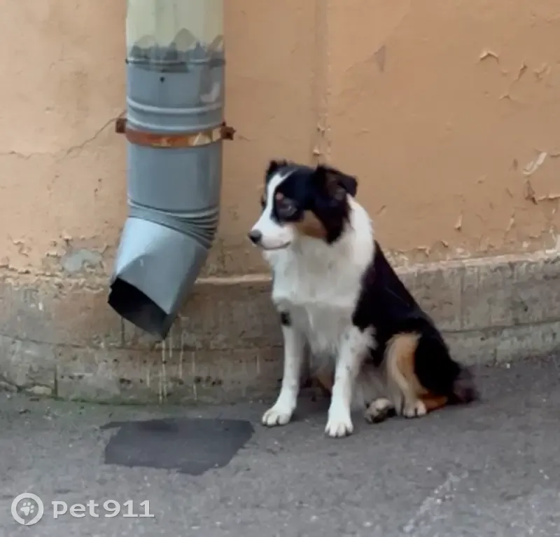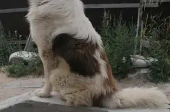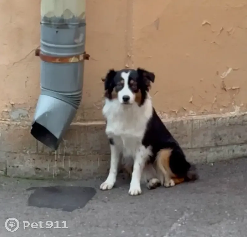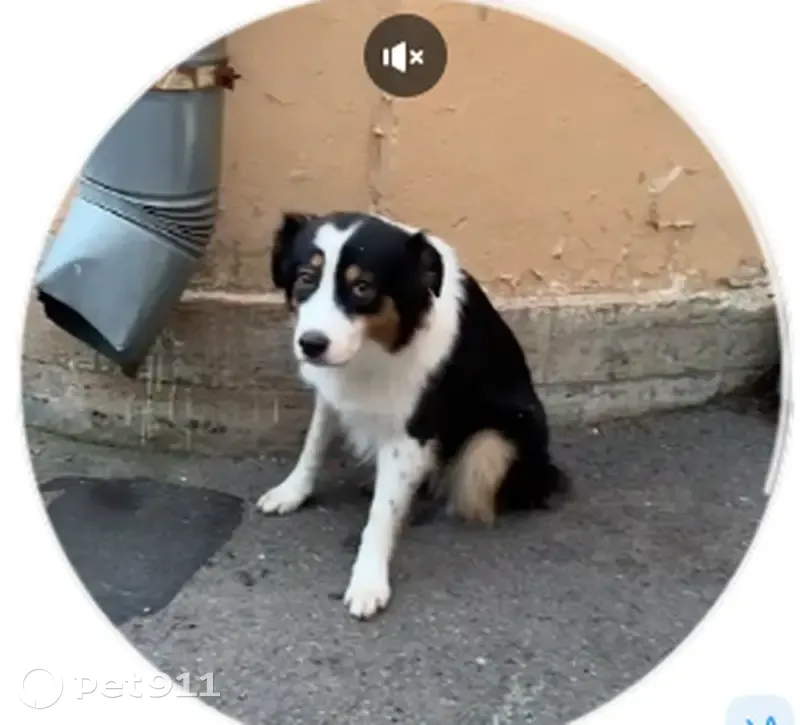 Среднего размера собачка, предположительно девочка. Сидит во дворе около детского сада, жмется к стене дома и водосточной трубе, к себе не подпускает, рычит, очень напугана.
