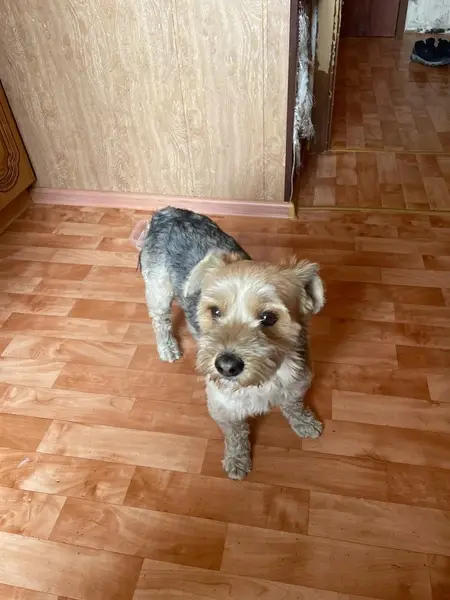 Ночью 08.02. Была найдена маленькая собака. Пряталась под машиной. Не щенок. По зубам молодой пёс. Мальчик. Адресника, ошейника не было. На чип проверили - тоже нет. Окрас светлый, хвост и ушки темные. Очень голодный, на еду набрасывается. Ходит на пеленку. На улице стрессует.