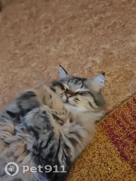 Кастрированный пушистый мальчик. Лапки темные, грудка светлее остальной шерсти. Окрас камуфляжный лесной. Один глаз к может быть мутноват. Может быть пугливым! В последний раз видели у дома по ул. Белградская 12.