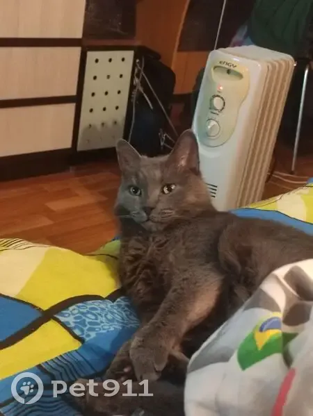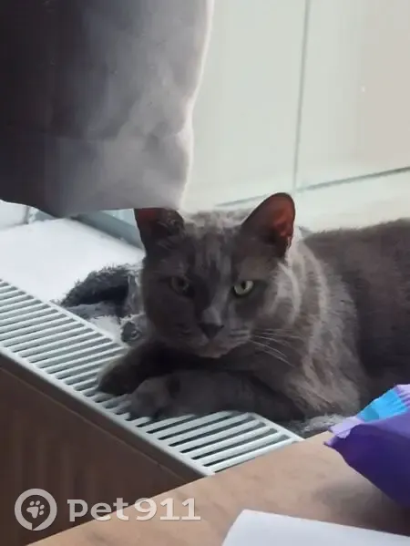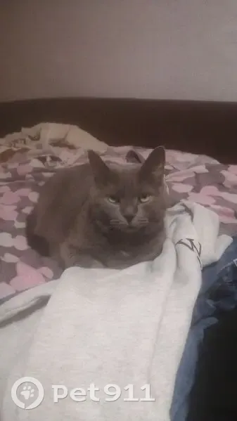 цвет:дымчатый, серый, пепельный белое пятно на груди между средним и упитанный котом кастрированый, кончик хвоста отстувует зеленые с жёлтым оттенком глаза выпал с балкона