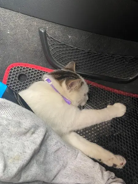 Белый с черной спинкой и чёрными ушами. Может быть один больной глаз. Очень пугливый, на кличку не отзывается. Пропал вечером, около девяти вечера. Проскользнул за дверь и убежал в подвал.