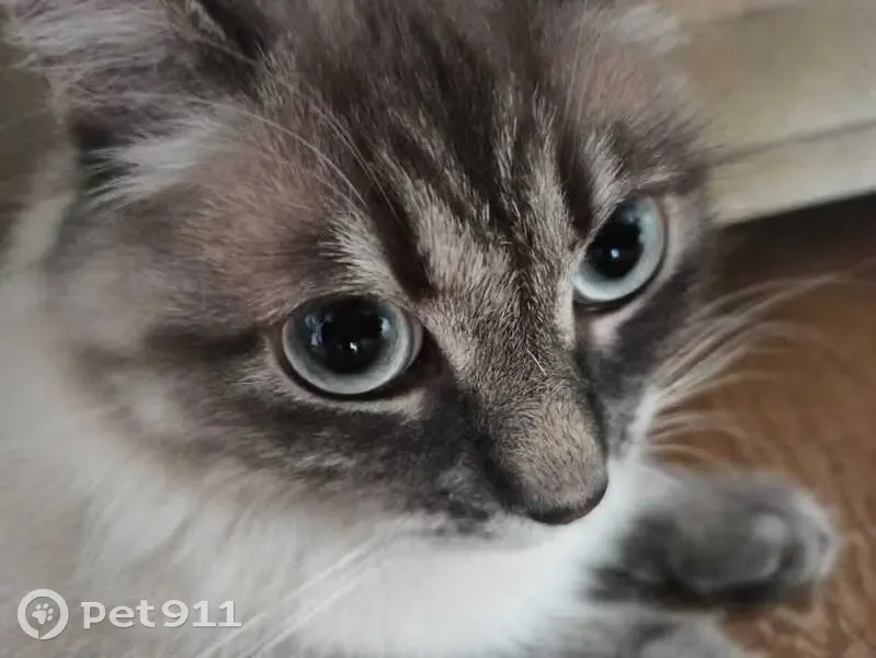 Шерстка бело-серая (с коричневатым оттенком). Цвет градиентными пятнами расползается по спине, мордочке, лапкам и хвосту. Глаза серо-голубые. Очень усатая!! Моша ушла утром (любит выходить из дома, однако до этого момента никогда не уходила со двора), но так и не вернулась, сколько бы ее ни ждали и ни искали. ;( Если вдруг увидите, то слезно умоляю сообщить, мы очень по ней скучаем!!