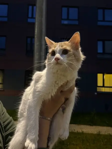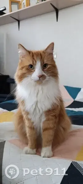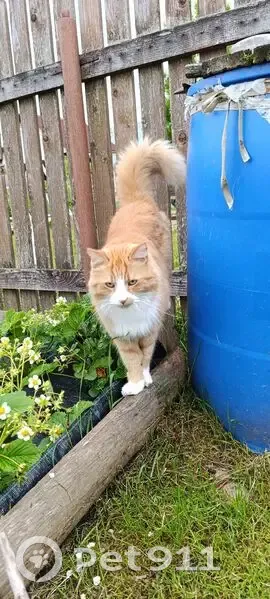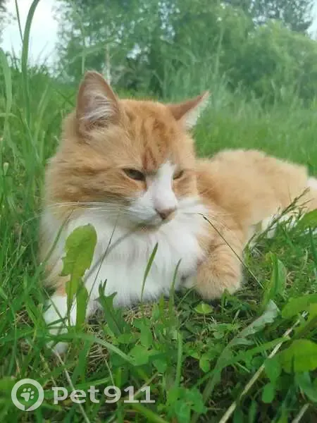 Рыжий, белые лапки, белая грудка, пушистый. Трусливый, добрый, домашний. Привезли сдачи , выскочил из рук от страха из за громкого резкого шума трактора.