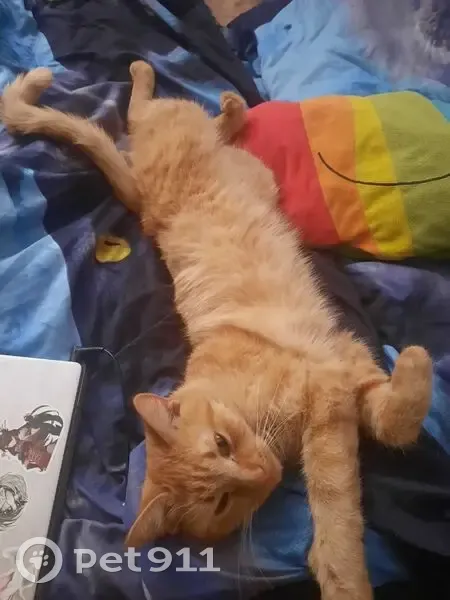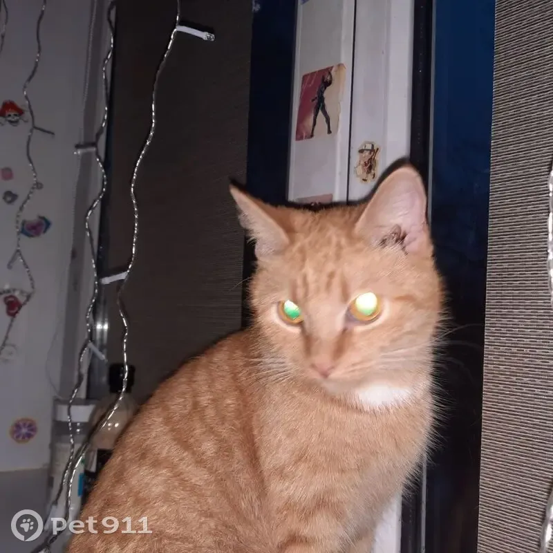 Рыжая с белыми полосками, янтарные глазки, разговорчивая и любит ласку. Возможно ранена, возможно упала с пятого этажа или ребёнок не уследил и выпустил в подъезд.