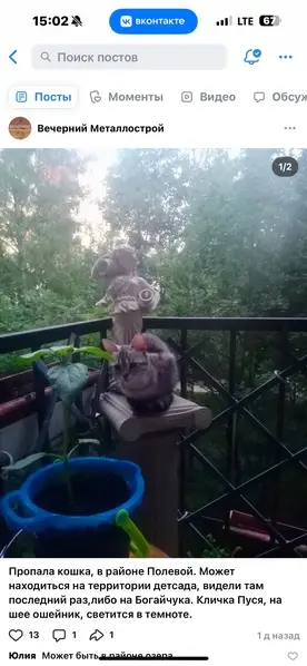 Видела в воскресенье вечером! Вашу или очень похожую. На торцевой стоянке между домами 46-50, ближе к улице Верности. Сидела под машиной. В доме 44 корп.1 женщина подкармливает кошек, там их много, Вы увидете. Спросите у нее, не прибился ли новый котенок. Повесьте объявления, лучше цветные, на столбах вокруг. Рано утром, часов в 5-6, когда тихо и нет машин, пройдите вокруг ближайших домов, они выходят на голос и звук знакомой тарелочки с кормом. Я свою так искала два года назад в течение двух недель. Нашла, слава богу. Удачи Вам. И я тоже буду смотреть. Мой телефон