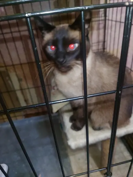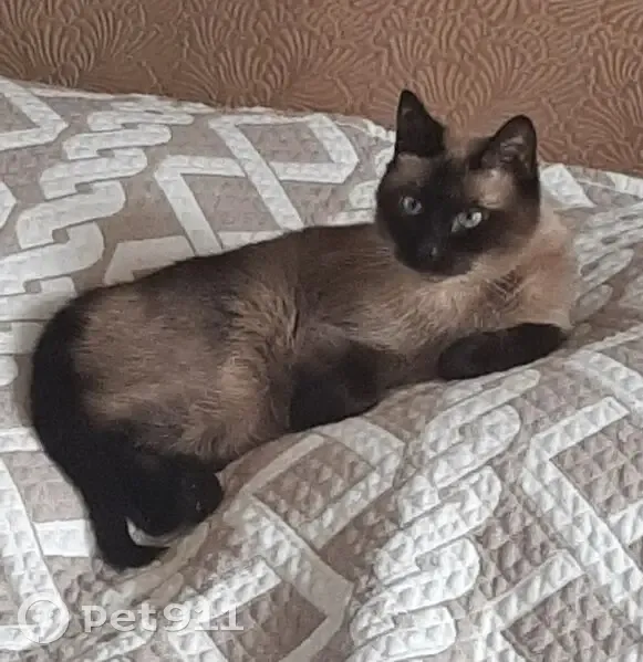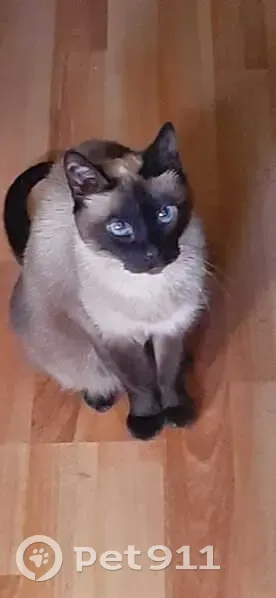 Окрас как у тайской кошки - маска на морде, хвост и лапы темно коричневые, остальное все бежевое, глаза голубые. Крайне пугливая, самим нельзя ловить и даже двигаться в ее сторону, нужно сфотографировать при возможности и просто позвонить.