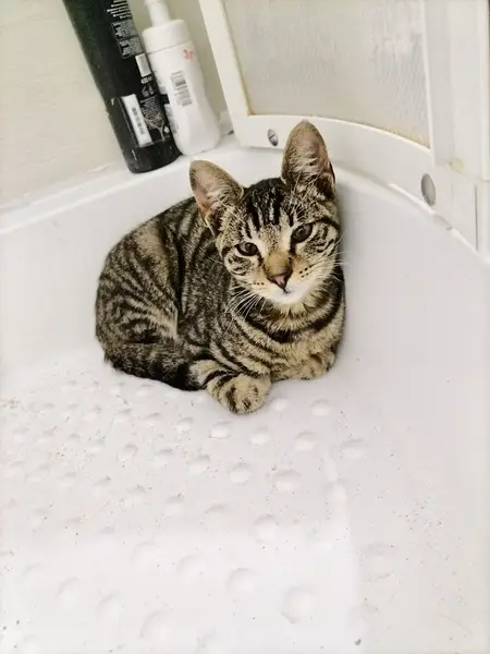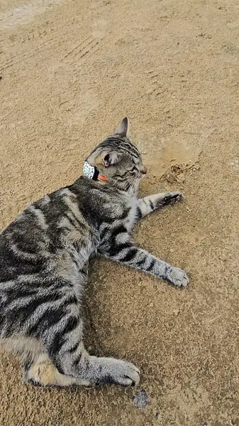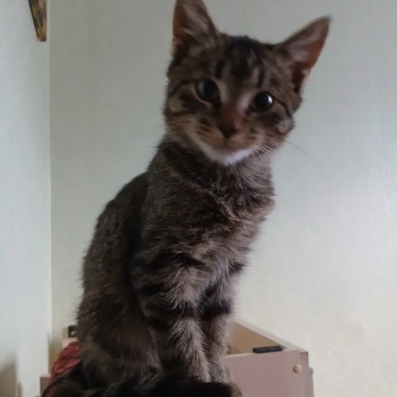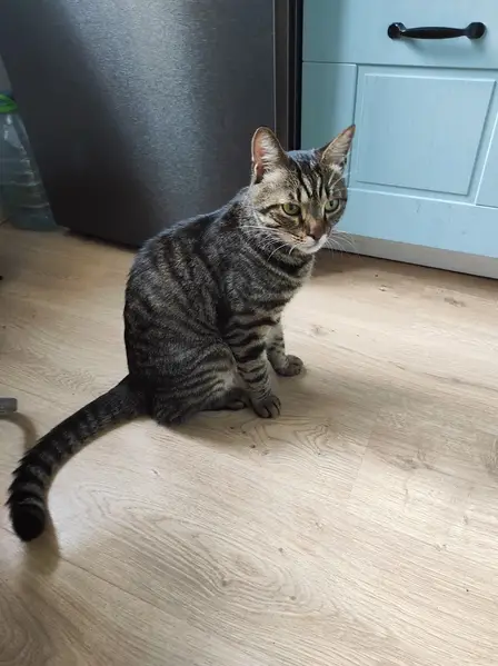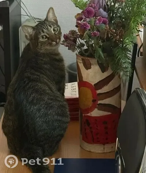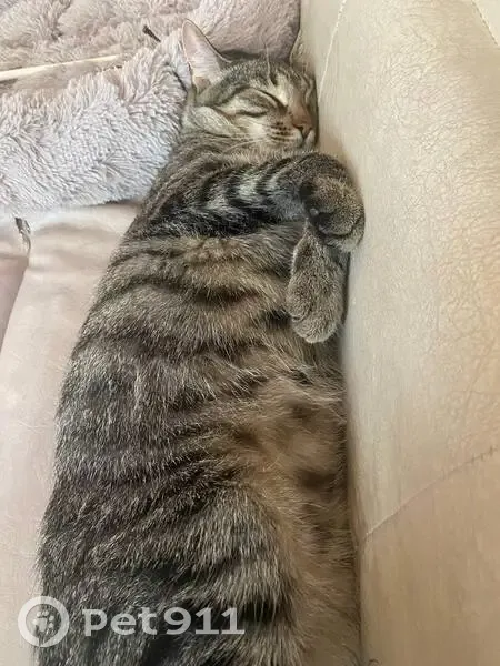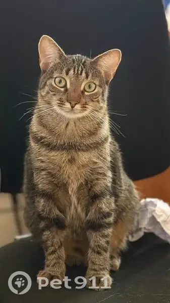 Короткошерстный, окрас серо-коричневый, с тигровыми полосками (табби), живот и мордочка более светлые, чем туловище, немного с рыжиной. Кастрирован. Нос тепло-коричневого цвета. Глаза зелено-желтые, посажены широко. Туловище мускулистое, длинное, хвост длинный. Очень хорошо умеет лазать наверх и вниз. Убежал недалеко от монастырского парка и больницы #6.