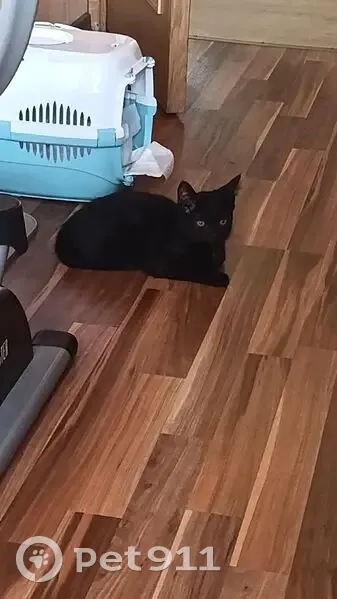 Чёрного цвета, маленькая, пугливая. Выбежала из квартиры