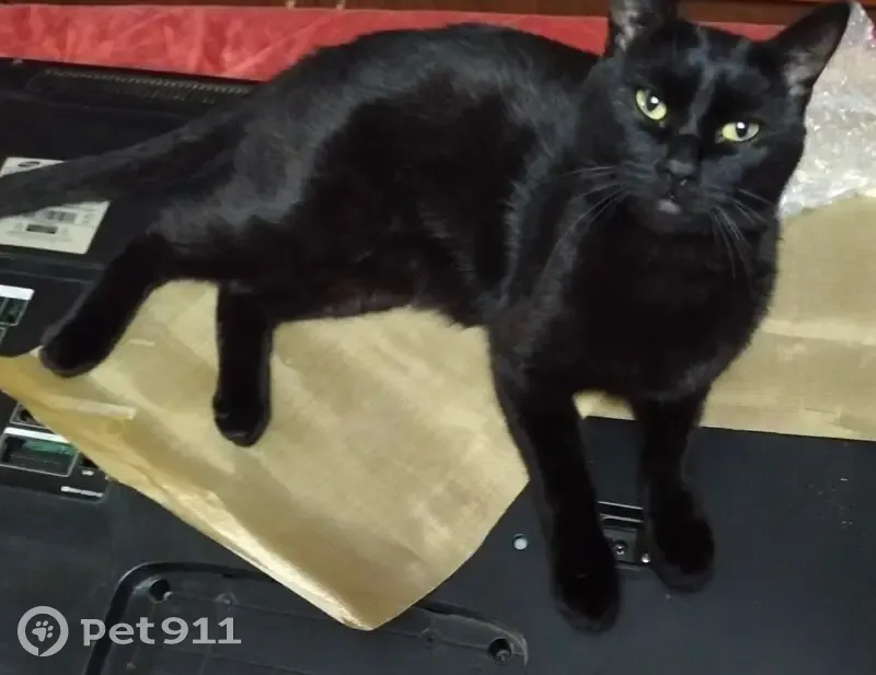 Чёрный как уголёк, усы тоже чёрные, есть немного белых шерстинок на животе, 1-1.5года стерилизован, любопытный но пугливый, очень шустрый, порвал сетку и вылез в окно 13.10.25