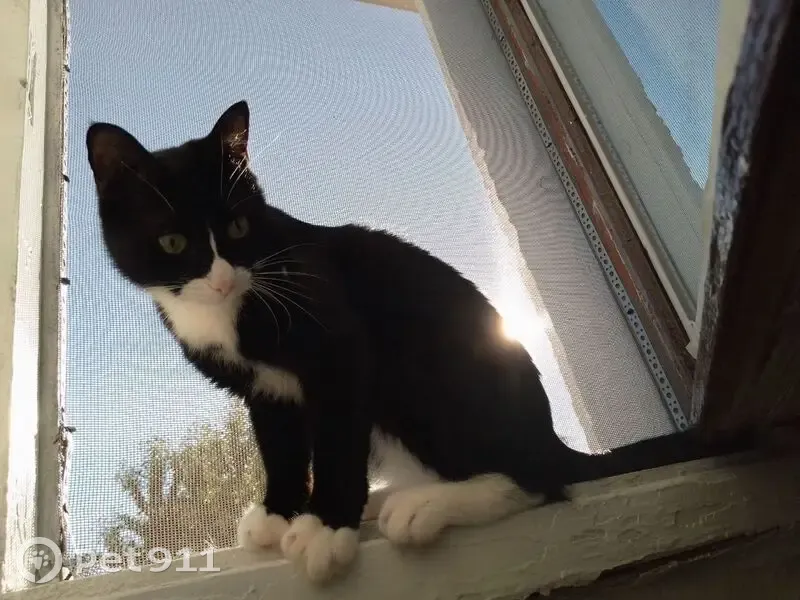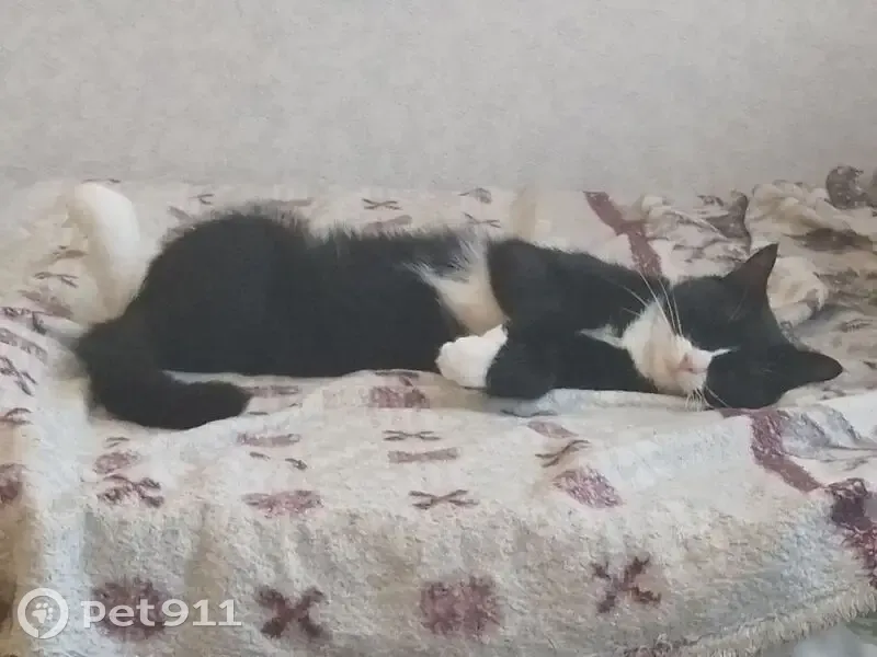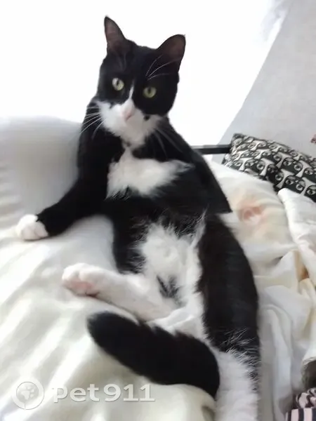 Окрас черно белый. Белые носочки на передних лапках, а на задних белые гольфики, белая шейка и пузико. Очень активный, ласковый. Кастрирован. Никогда не был на улице, только в переноске.