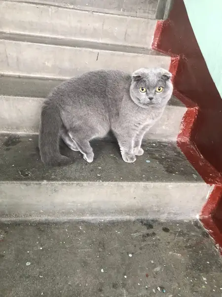 Серодымчатого цвета, с зелеными глазами, любит прятаться в узких закрытых местах, иногда на лестничной клетке сидит или в колясках детских, возможно обитает в подвале или на чердаке, не особо людимая, реакция на чужих людей неизвестна