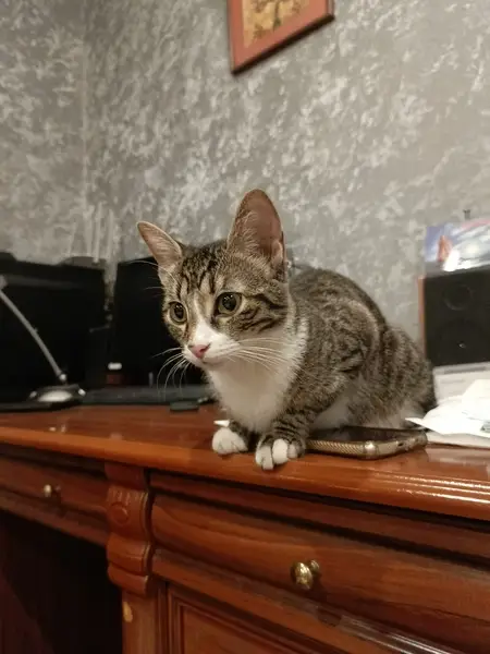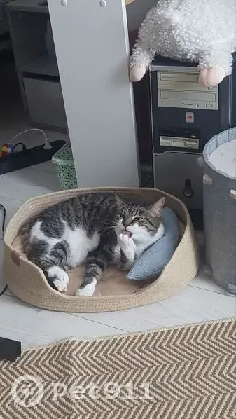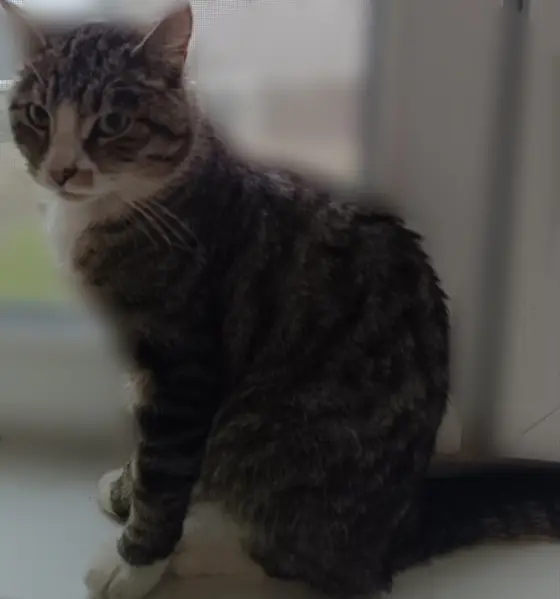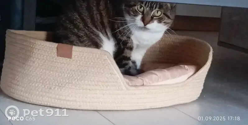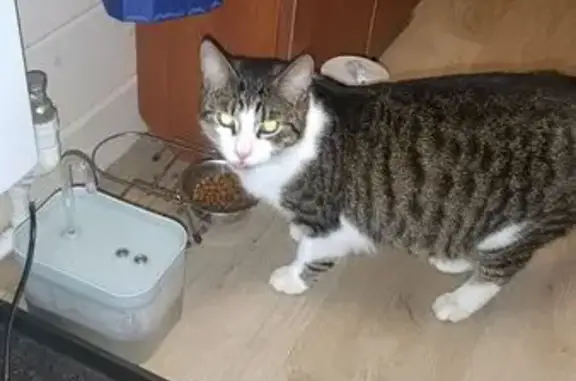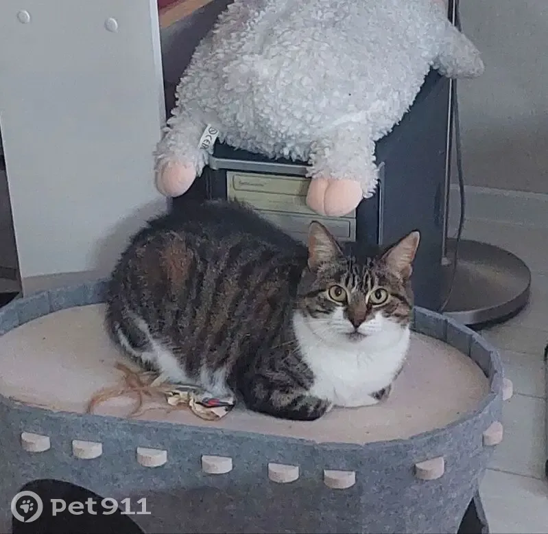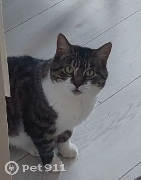 Санкт-Петербург, Кировский район. Потерялась кошка Мирра, обычная полосатая, нос темный, на задних лапах белый узор. Убежала из ветклиники в подвал дома на пр. Маршала Жукова, 54, корп.6