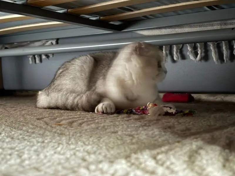 Голубые глаза, окрас серо-белый, порода британский веслоухий. Котёнку 5 месяцев. Пропал возле ветеринарной клиники. Выходя из клиники, мимо проходила женщина с собакой, собака залаяла, котёнок испугался и убежал.