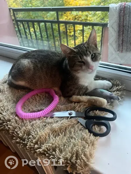 МАЛЬЧИК возраст: 7 месяцев окрас: серый в полоску с белым пузиком и лапками глаза: зеленые не кастрирован, не крупный, пугливый НА ХВОСТЕ БЕЛАЯ КИСТОЧКА