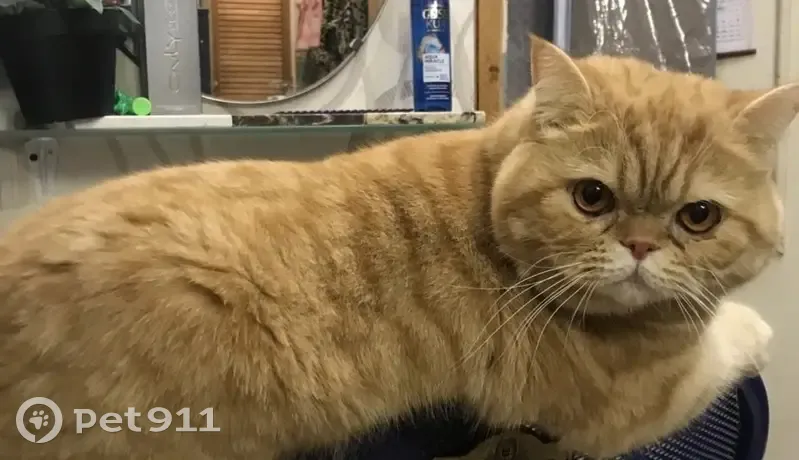 Окрас: рыже-бежевый. Порода: кот с приплюснутым носом (персидского типа / экзот). Особенности поведения: довольно пугливый, не всегда даётся на руки. Размер: крупный.