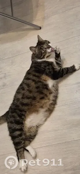 ПРИМЕТЫ: Шерсть короткая пегая Белая грудка Большой живот Нет правого клыка Кот болен и должен ежедневно принимать лекарства. Ручной, чистый, идёт к людям.
