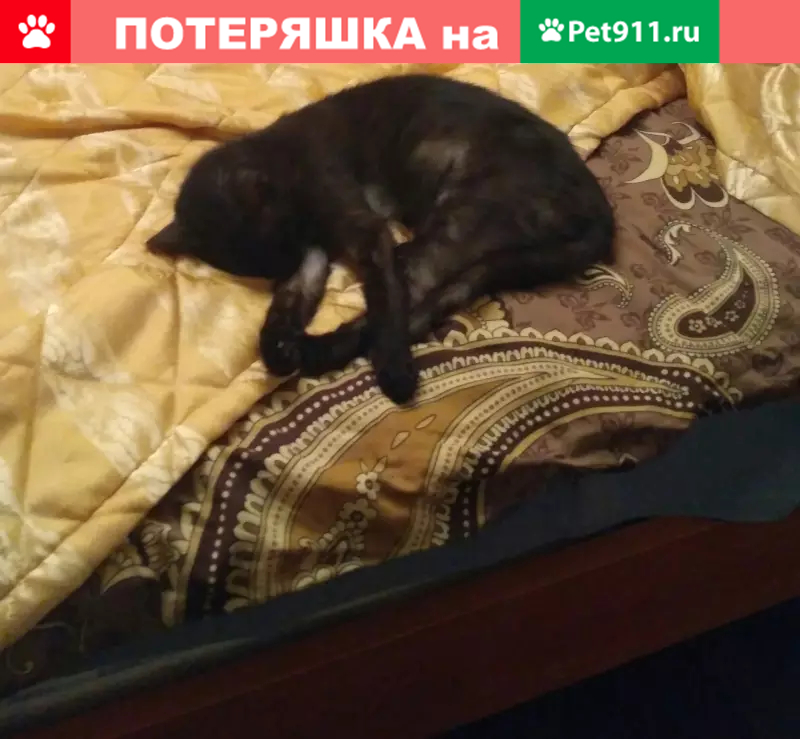 Кошку зовут Боня. Старенькая, но активная. Очень худая. Шерсть сверху черная, подшёрсток светлый. Очень домашняя, но, скорее всего, незаметно выбежала из дома. Всегда любила приключения(