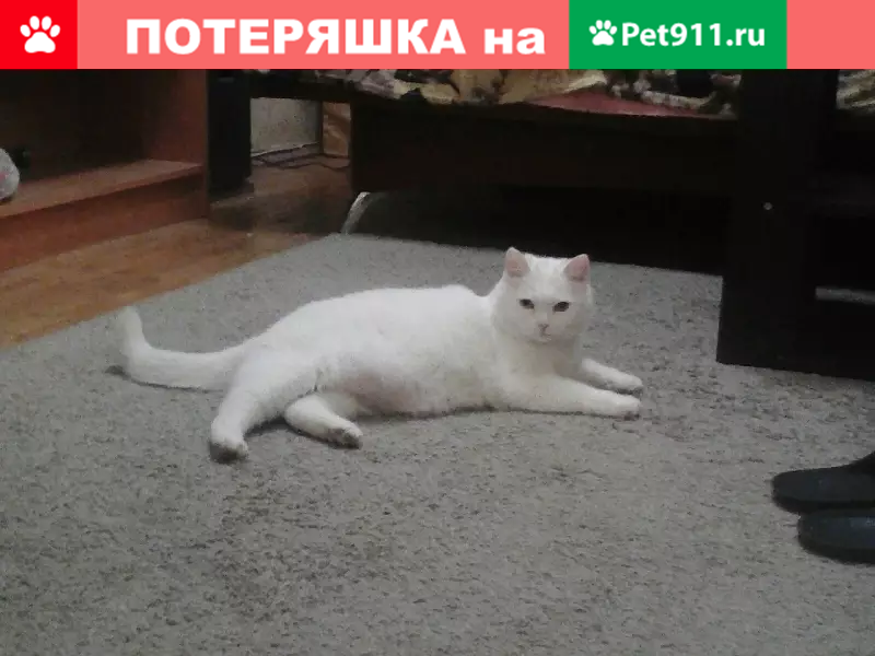Санкт-Петербург, Выборгский район, ул .Асафьева д 2 кр 2 кв 37. Потерялся кот очень большой,белого цвета, кастрированный, поэтому живот очень свисает...около 8.30--9.00 утра,23.05.2019 года.... Зовут Гарисс, очень добрый и домашний кот.....на руки к чужим не пойдет.....на кыс-кыс почти не реагирует..... Первый раз убежал,и что такое улица не знает...Пожалуйста,помогите,кто увидит или что то услышит.... Вера Алексей Очень ждум звонка.... Всем заранее спасибо...