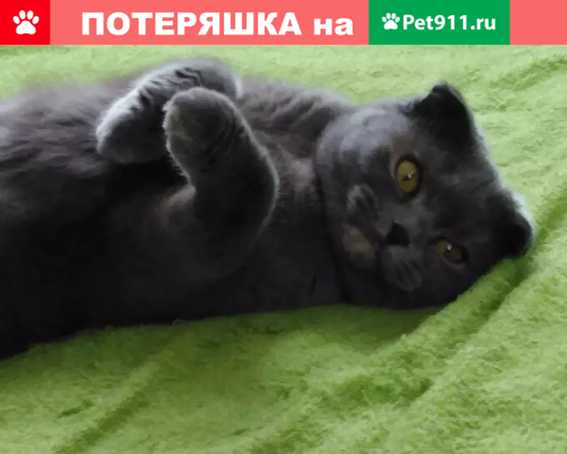 Потерялась кошечка! 1 год 3 месяца, зовут Дуся, стерилизована. Порода шотландская вислоухая, окрас серо-голубой, миниатюрная, ушки полустоячие. 08. 07 2019 спрыгнула с окна 5 этажа на ул. Купчинской. Пугливая, мяукает тихо и редко, была без ошейника. Звоните в любое время. Тел. 8-950-005-69-17 Наталья