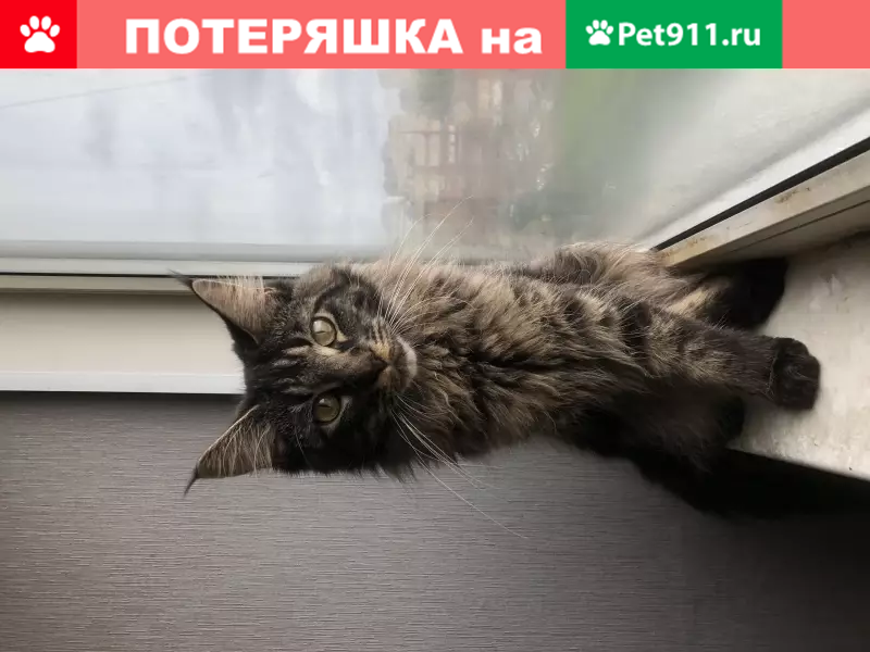 Пропала кошечка породы Мейн-кун, выбежала из квартиры, соседи сказали, что видели на лестничном пролёте, но мы так и не смогли ее найти, возможно выбежала из дома. Кошке 2 года, весит около 3,5 кг, пушистая, с очень густым пушистым хвостом, кисточками на ушах, густым воротником на грудке. По окрасу мраморная (черно-серо-коричневая). Зовут Рори, кошка в первый раз вышла за пределы квартиры, поэтому скорее всего очень испугана, прошу, не будьте равнодушными, если заметили, что похожа на фото, попытайтесь поймать, спокойно подозвав по имени