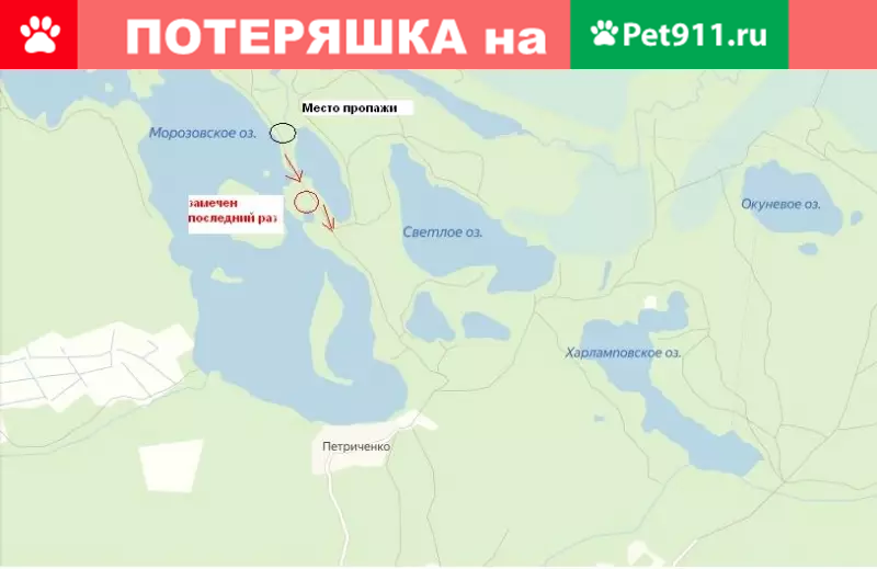ЛО, Приозерский район, Мичуринское сельское поселение, деревня Петриченко, поселок Мичуринское. https://vk.com/id1442210 Пропал кот в ночь на 06.08.19 в районе озера Морозовское/Светлое, ближайший населенный пункт деревня Петриченко и Мичуринское. Ушел гулять/охотиться вечером и не вернулся. Обычно всегда возвращался в палатку. Был замечен туристами в направлении Петриченко, но по горячим следам не найден. Кот тайской породы,характерного окраса, глаза голубые. Был в зеленом ошейнике. На носу горбинка, из-за чего не умеет мурлыкать(хрюкает). Отзывается на кличку "Плюш". У кота мощный плечевой пояс, но при этом быстрый, к людям незнакомым на руки не идет, но поймать можно, не агрессивный. Не кастрирован. На вид лет 6-7.Телефоны для связи Галина; Сергей. На схеме местности указаны места пропажи и последних следов. Красными стрелками указано предполагаемое направление движения. #пропал_кот #потерялся_кот #окрас_пойнт #тайский #ошейник_зеленый