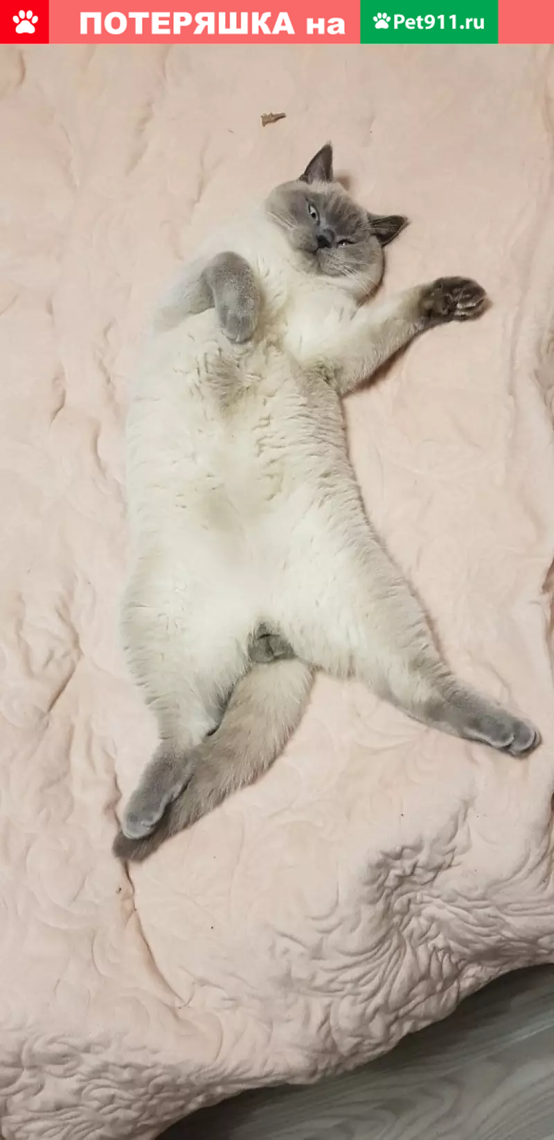 Пропал кот Флэш, возможно упал с балкона по адресу Молодцова д 2