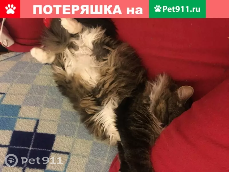 Пропала 26. 10. 2019 в районе Манежного переулка, 15-17. Серая, пушистая. На лапках белые носочки