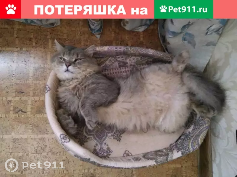 Потерялся наш любимый пушистик. Пропал 19 октября. Пожалуйста, если Вы видели похожего котика или нашли его, обязательно позвоните мне. Особые приметы: хвостик еще не долинял на зиму, у попки значительно пушистее, чем на конце (по типу "крокодильчик"). В сером тонком ошейнике от блох. Могут слезиться глазки, поскольку пропал в процессе лечения. Не кастрирован. На шее серый тонкий ошейник от блох. Могут слезиться или гноиться глазки, поскольку пропал в процессе лечения. Хвостик пушистый неравномерно, у попки более объемный, чем у кончика. На лбу есть следы от давних шрамов.