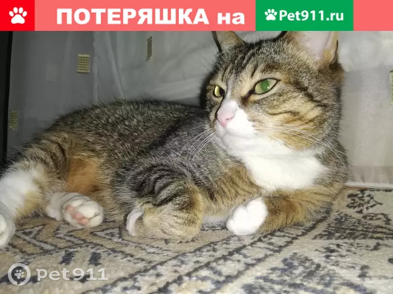 Кошка Киса, 5 лет и 8 мес. беспородная. Предположительно, выбралась из окна дома вечером 11 ноября. Кошка домашняя, но к людям не подходит, убегает.