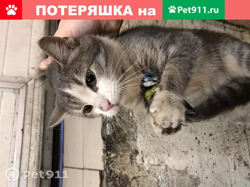 Серый кот 1 год. Ошейник чёрный . Просьба вернуть