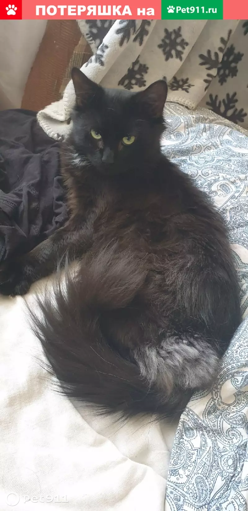 Большой, пушистый молодой (1 год) чёрный кот с белым пятном на грудке и серым мехом под хвостом. Отзывается на кличку Троцкий. Выпрыгнул из окна на втором этаже, перепугался и убежал.