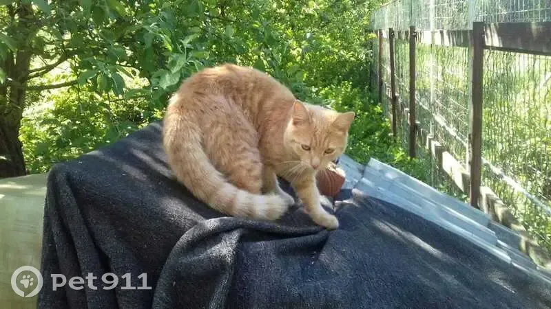 Рыжик, метис, кот кастрированный, 5 лет, окрас персиковый, ошейник кожаный коричневый с телефоном на внутренней стороне. Ласковый контактный, не вернулся с прогулки, в хорошую погоду пропадал на участке, домой приходил чтобы подкрепиться. Охотился на птиц и мышей.