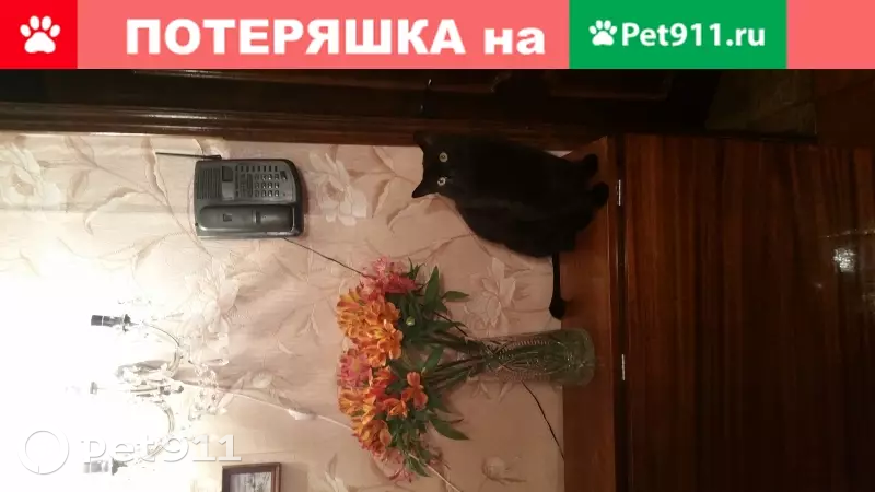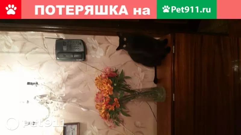 Пропал кот метис, черного цвета. Глаза желтые, большие.