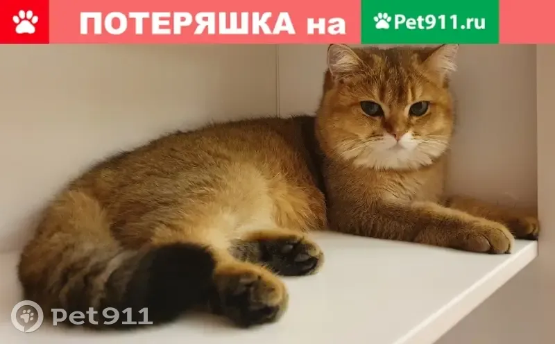 Пропала золотая британская кошка в Санкт-Петербурге.