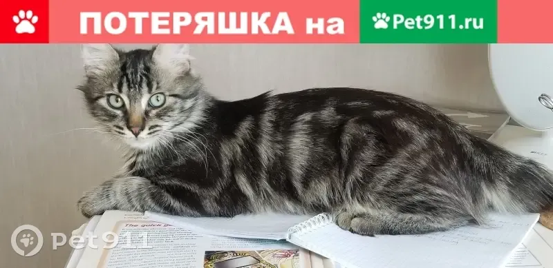 Кота зовут Шелдон, но на имя может не откликаться. Возраст - примерно 8 месяцев, по размеру небольшой, весит порядка 3,5 килограмм, кастрирован, не чипирован. Окрас полосато-пятнистый, на спине шерсть серо-чёрная, а на животе, снизу хвоста и на шее серо-бежевая. Глаза зелёно-голубые. Кот упал с балкона, поэтому его состояние здоровья на данный момент неизвестно. Может хромать. По характеру очень любопытный, предполагаю, что мог уйти далеко от дома.