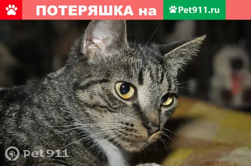 Пропала беспородная кошка. Кличка - Катя. Возраст - 3 года. Окрас - серый-поласатый, с белым. Упитанная. Стерилизована. Пропала 9 августа поздно вечером на ул. Маршала Захарова у дома 37 корп. 2.