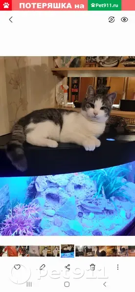 Пропал кот-Боня 9 месяцев.пропал в поселке Лисий Нос.ушел погулять с Большого проспекта.котик очень ласковый.голова,спинка и хвост серые.животик и лапки белые.на хвосте черные кольца.мы его очень любим и ждем!!!прошу вас!!! Помогите мне найти моего Боню!!!порода-дворянин.