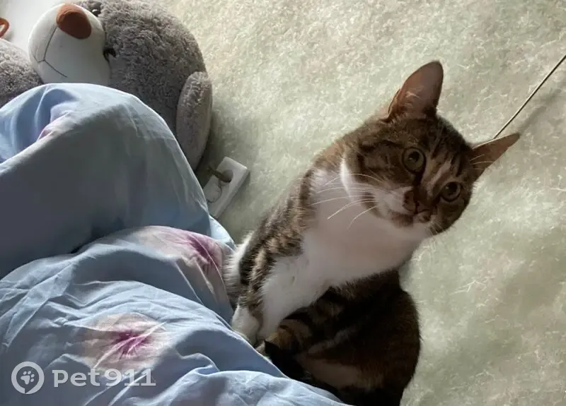 Кличка Зеля, отзывается, вероятно на уличку не подойдёт но повернётся выбежала из квартиры во время ремонта, белое брюшко и полоса небольшая на мордочке, кошка небольшая, но очень упитанная.