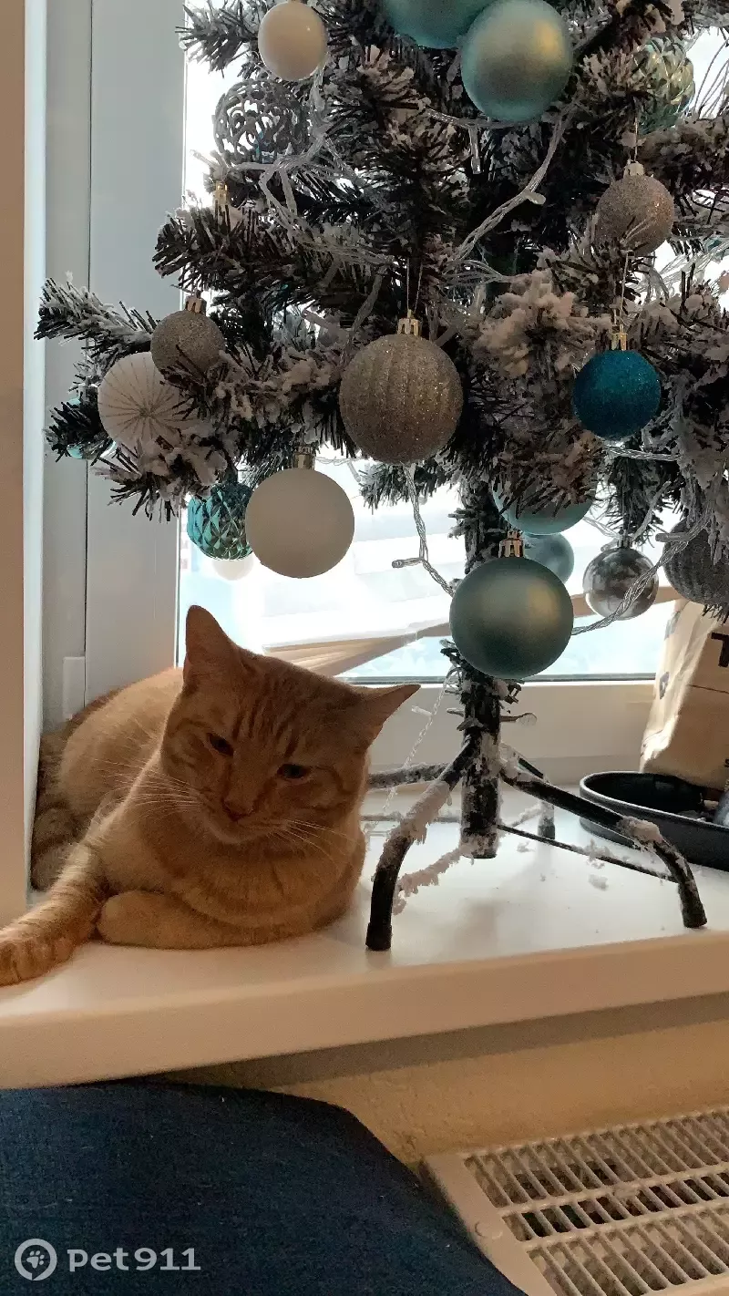 Беспородный Кот Лёня.(не кастриррван) Ярко рыжий в полоску Ошейник с голубой биркой ввиде лапки Ночью вынесли погулять (охладиться).Раньше также гулял около дома. Спрятался под машину Пока пытались достать видимо вылез и убежал. Обожает любые жидкие корма