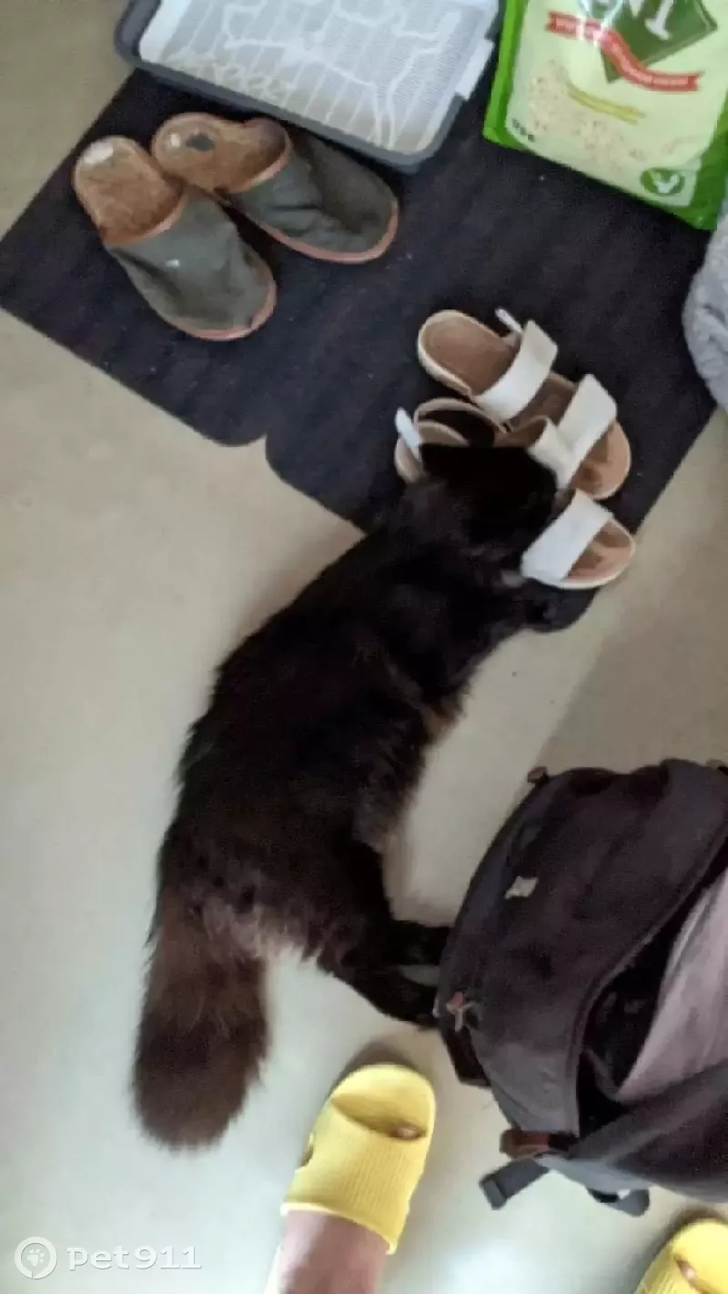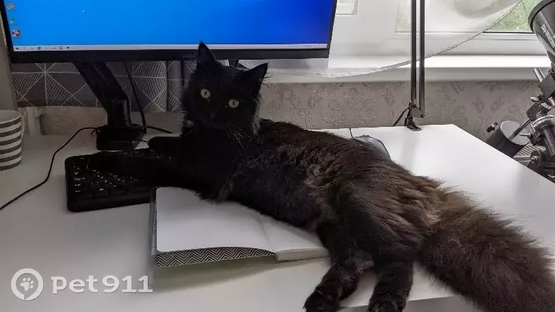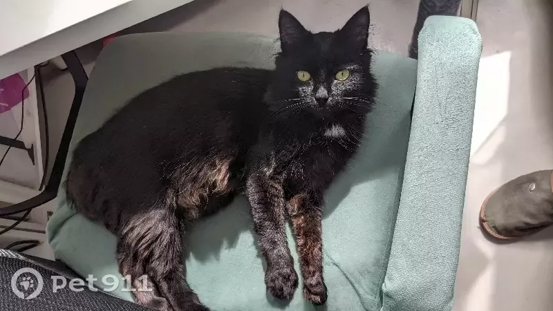 Кот мальчик, зовут Фунтик, на кличку оборачивался. Окрас черно-коричневый. Коричневым отливает на солнце в основном. На груди белое пятнышко. Очень пушистый хвост. На хвосте есть отдельные длинные светлые шерстинки, как-будто седые. Они по одной раскиданы по всему хвосту. На фото не видно, но в живую должно быть заметно. Острые кончики ушей. Примерно месяц назад делали узи брюшной полости и шерсть на месте бритья еще не до конца отросла, на фоне остальной длинной шерсти должно быть заметно. Пугливый и на руки скорее всего не пойдет Возраст чуть больше года, не кастрирован