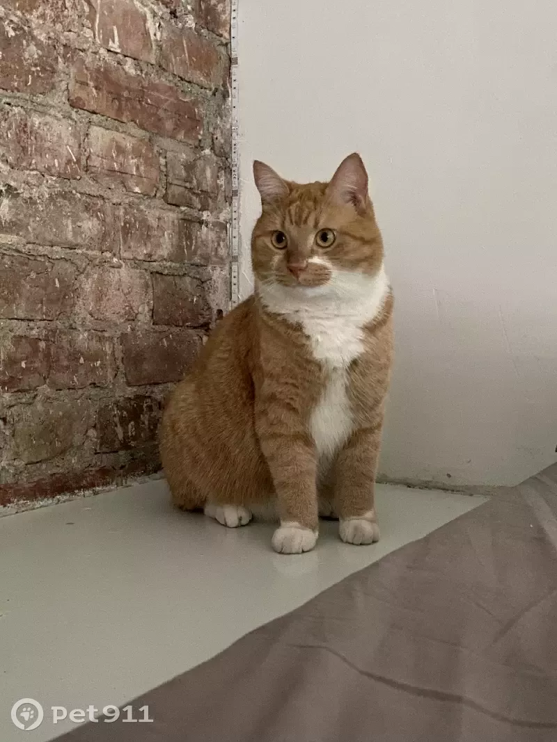 Порода: метис - дворовый. Котик рыжий, лапки-носочки/пузико и грудка белые. Вырвался с поводка, испугался машин и звуков и побежал - домашний, кастрированный, привитый, есть чип в холке с информацией о хозяине. На улице бывал в переноске только, поэтому неопытный ходок.