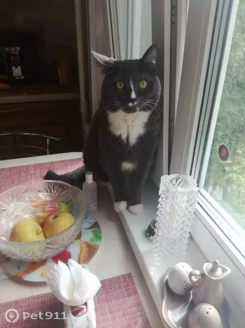 Одиннадцатилетний большой кот Мики. Окрас пепельный, цвет глаз жёлтый. Беспородный. Приучен ходить в туалет. Особые приметы: белые пятна на животе, грудке, лапах и морде. Ночью c 25 на 26 августа убежал из квартиры (либо через окно, либо прошмыгнул в дверь).