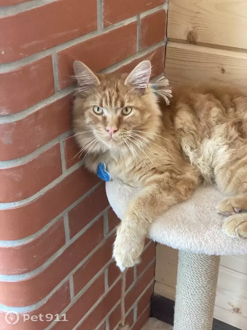 Пропал кот Базилио на ул. В. Шишкова 28к.2, рыжий Мей кун с голубым ошейником
