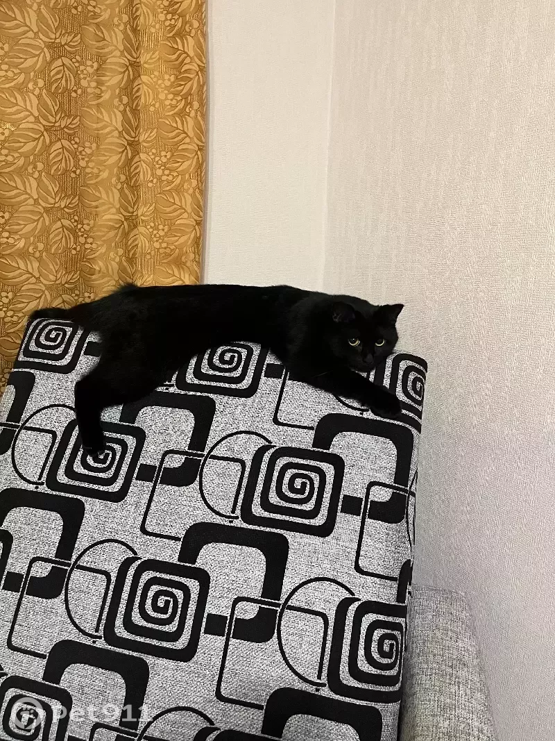 Полностью черный кот, откликается на кличку Салем. Желтые глаза, темные подушечки на лапках. Кастрирован. Возраст 2 года, средний размер. Пропал из квартиры.