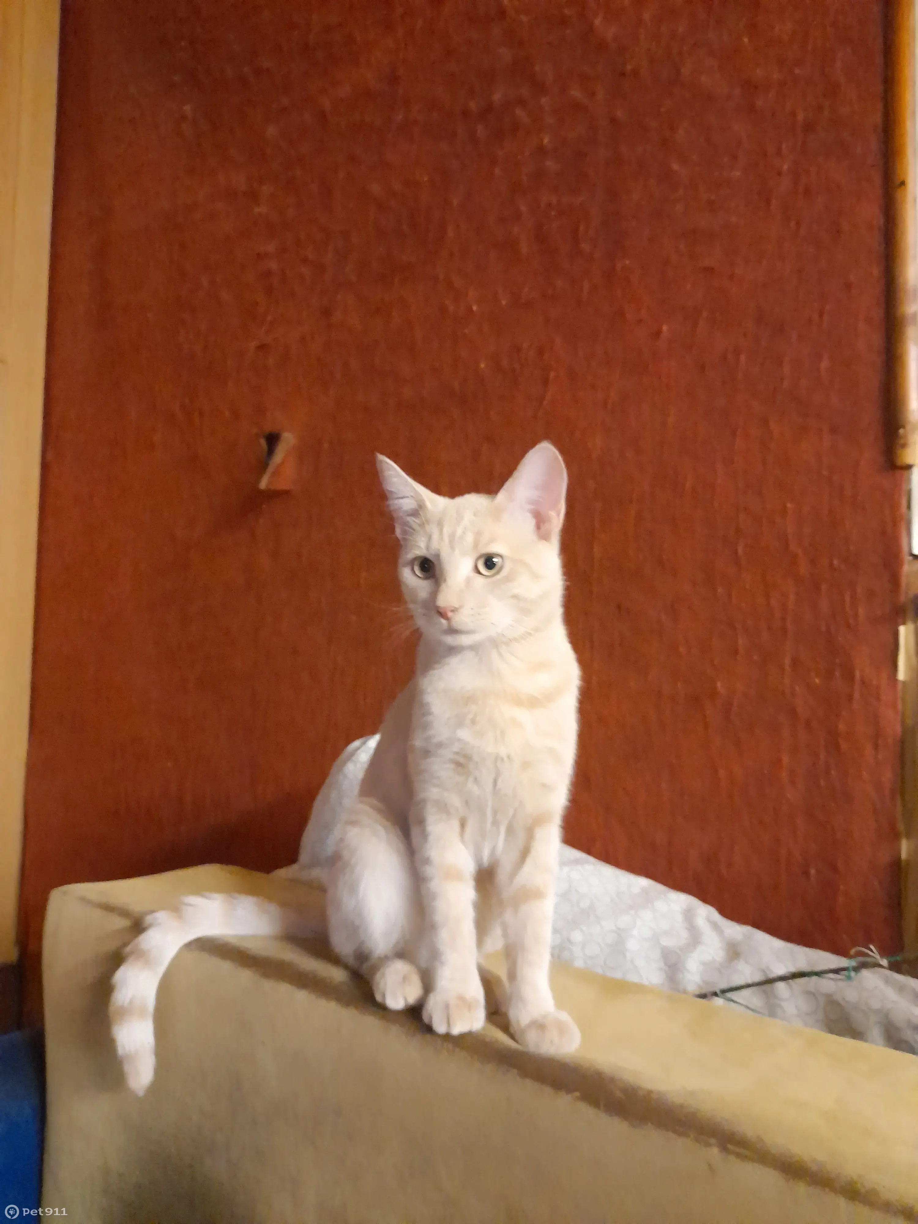 Мальчик песочный цвет с рыжими вкраплениями желтые глаза 2 года везли с ветклиники,сделав прививку . Везли в шлейке (он очень боится переноски) и вырвался из шлейки на Народной 73.