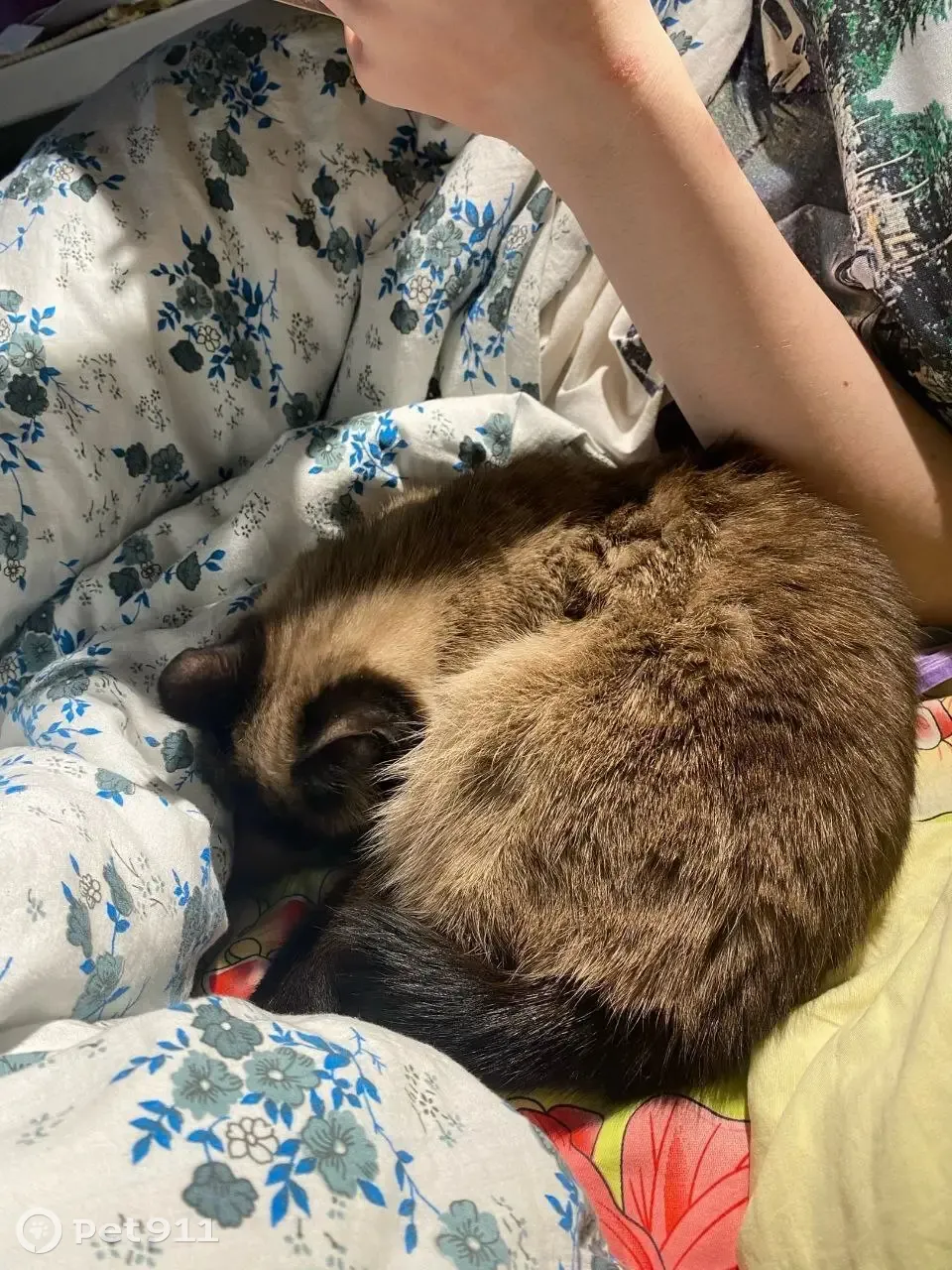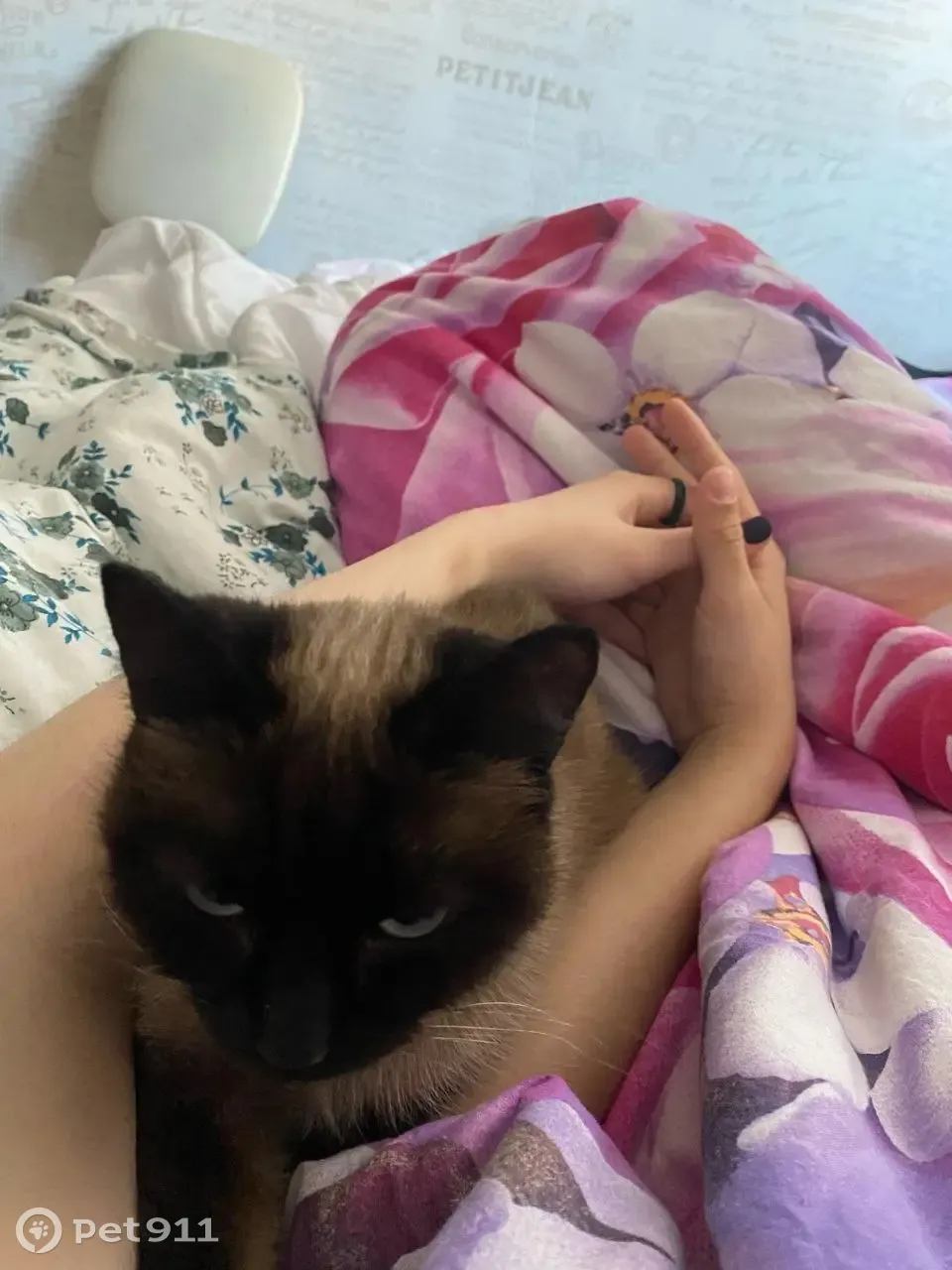 девочка-кошечка, чуть меньше годика. очень пугливая, может быть ранена. скорее всего спрячется и даже не будет выходить, на руки берется спокойно, очень ласковая. Темная мордочка, лапки и хвостик, тайская кошечка. Задняя правая лапка ранена.