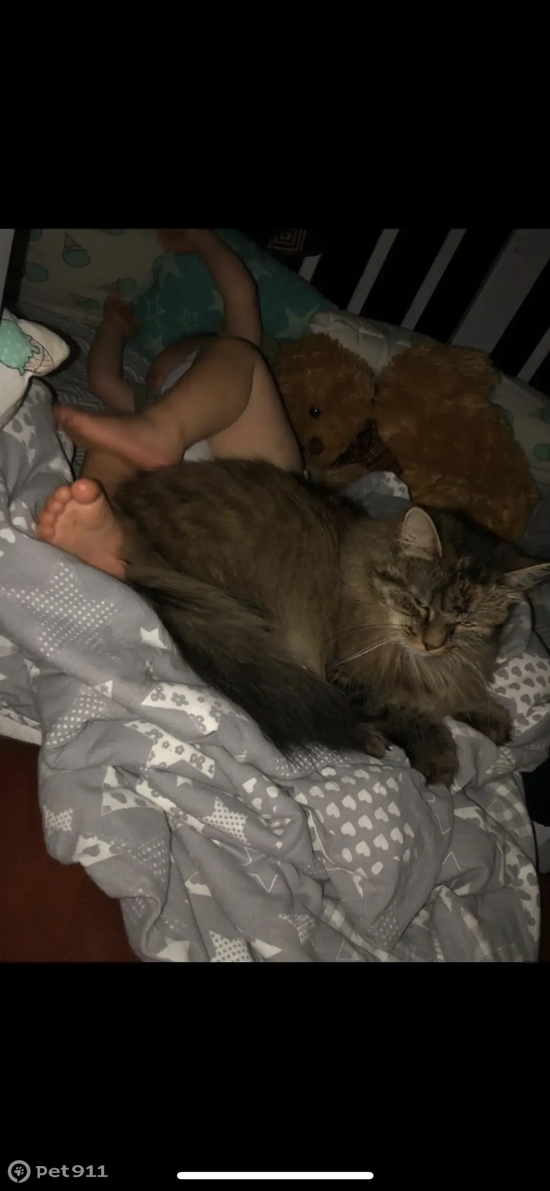 Самка, стерилизована, серо-коричневая, возраст 8-10лет, глаза зеленые, очень пугливая, предположительно выпрыгнула из окна второго этажа